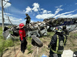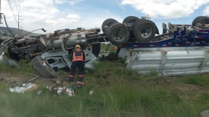 Los reportes indican, que el conductor de la pesada unidad, quien circulaba a exceso de velocidad, perdió el control y embistió a una camioneta tipo Pickup, en la que viajaba una familia, a la altura del kilómetro 002+500.