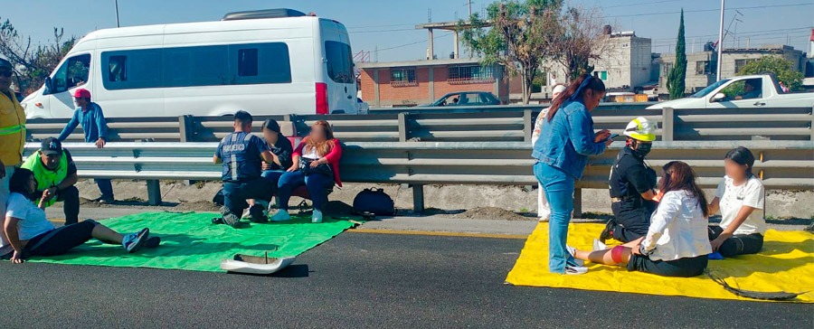 Sobre el pavimento se colocaron a las personas heridas- A dos las catalogaron con lesiones graves por lo que requirieron traslado a un hospital, a seis las atendieron en el lugar y otras cuatro solo resultaron con golpes.
