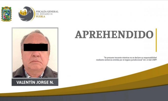En seguimiento a las indagatorias, la Fiscalía Especializada de Combate a la Corrupción, solicitó y obtuvo de la autoridad judicial orden de aprehensión en contra de Valentín Jorge N., detenido esta mañana en el barrio de Xanenetla de la capital poblana.