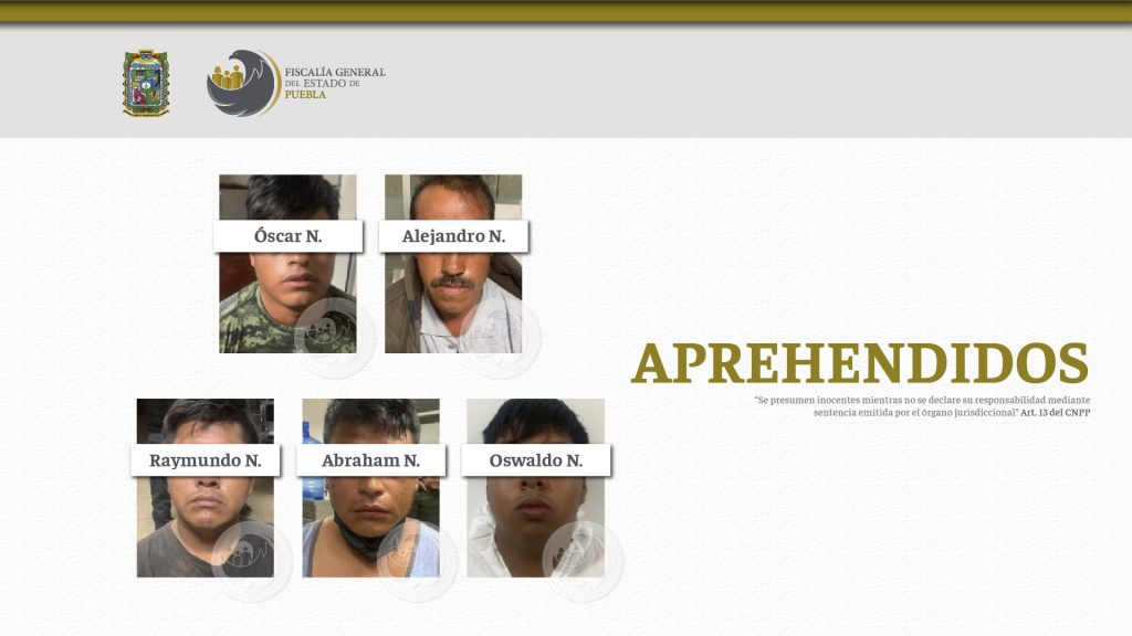 La Institución responsable de procurar justicia solicitó y obtuvo órdenes de cateo a 12 inmuebles y logró la aprehensión de cinco hombres: Óscar N., Alejandro N., Raymundo N., Abraham N. y Oswaldo N.