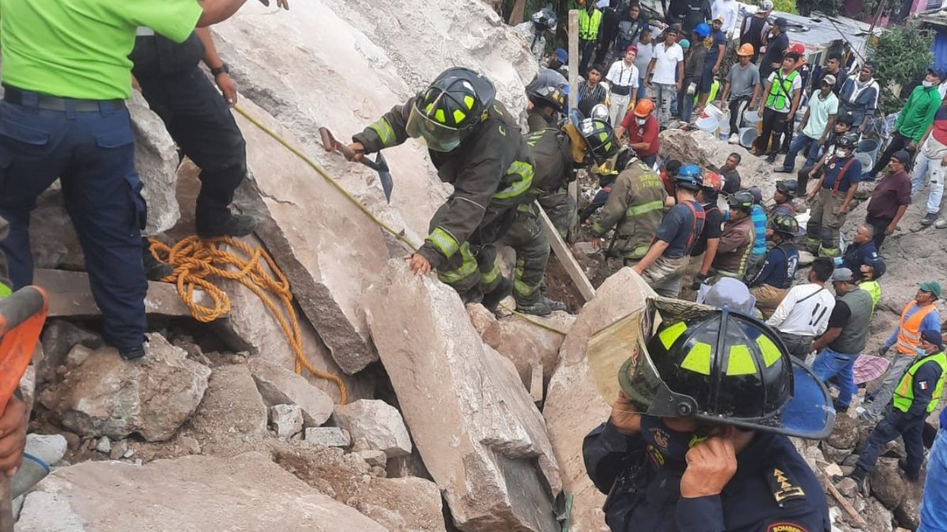 En lugar trabajan cuerpos de emergencia retirando escombro, acordonando y evacuando la zona para evitar más riesgos.