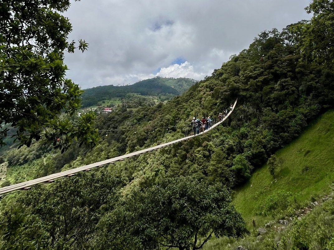 Turistas se quedan atorados en puente tibetano de Tlatlauquitepec