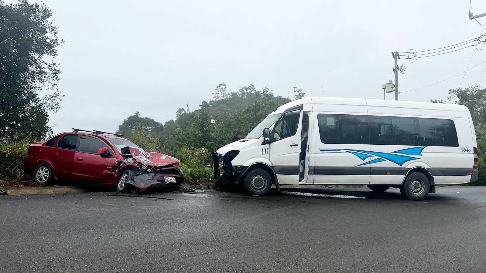 El accidente fue a causa de que un auto compacto invadiera carril e impactará a la Unidad de Transporte Público donde viajaban estudiantes del Tec de Zacapoaxtla; por fortuna solo lesiones leves presentaron.