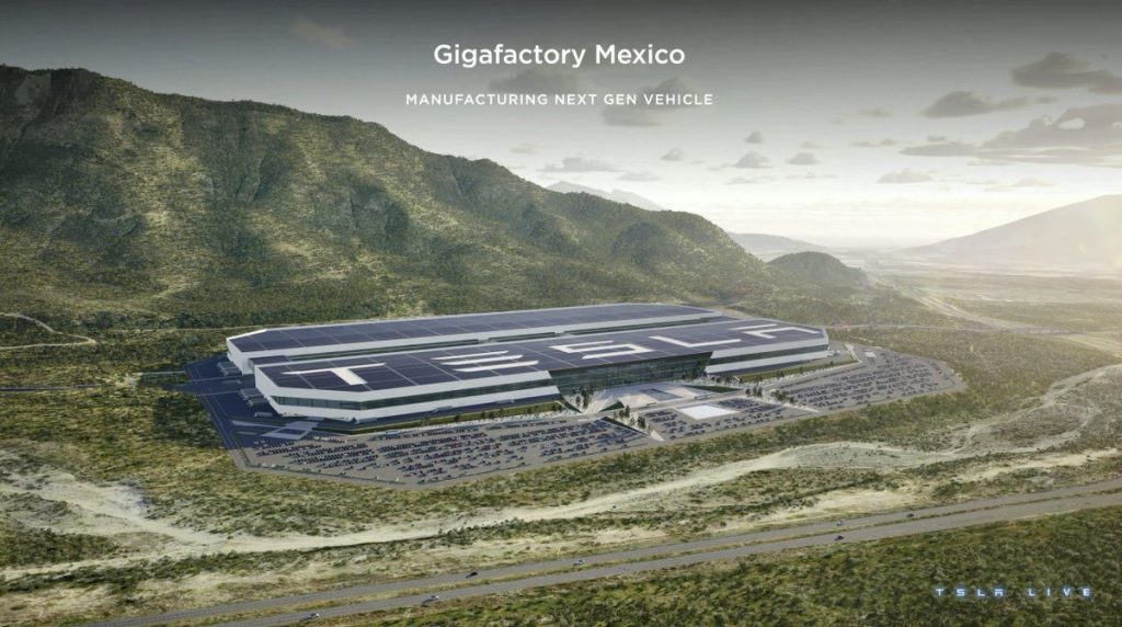 Elon Musk presentó en el Investor Day la primera maqueta de la que será la planta Tesla en Nuevo León, México, para la cual...