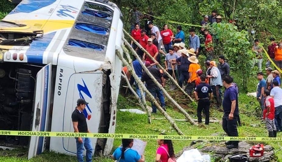 Trágico accidente en la Zacapoaxtla-Cuetzalan; autobús volcó, dejando una persona fallecida y 9 heridos