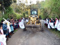El Presidente Municipal de Tlatlauquitepec, Porfirio Loeza Aguilar y funcionarios del Ayuntamiento, dieron el banderazo de arranque a la obra de pavimentación del camino...