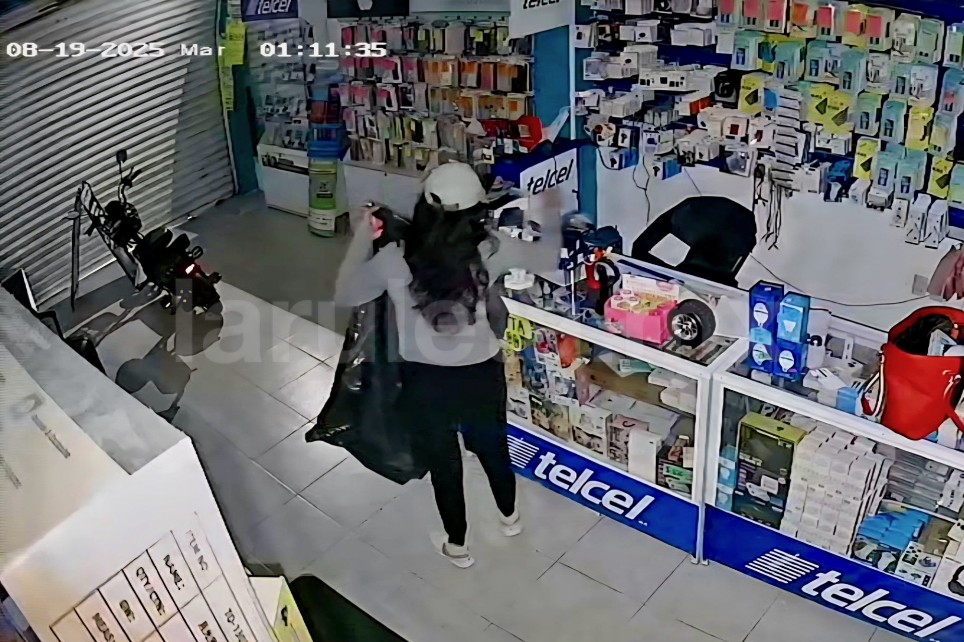 Los hechos ocurrieron la noche del 19 de agosto de 2025, cuando dos personas ingresaron a un establecimiento de telefonía celular identificado como “Creditodo”, ubicado sobre la calle Artes. Para acceder al local, los presuntos responsables forzaron la cerradura y posteriormente sustrajeron decenas de equipos telefónicos, los cuales fueron retirados en bolsas negras.