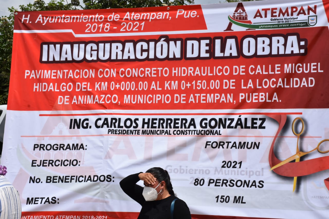Atempan, Puebla.- El Presidente Municipal de Atempan Carlos Herrera, llevó a cabo la inauguración de la obra de pavimentación con concreto hidráulico en la calle Miguel Hidalgo de la localidad de Animazco, en donde reiteró su compromiso de continuar