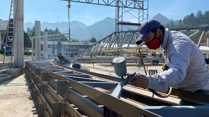 Gobierno de Teziutlán construye techado en canchas del patio principal en el Tecnológico Superior