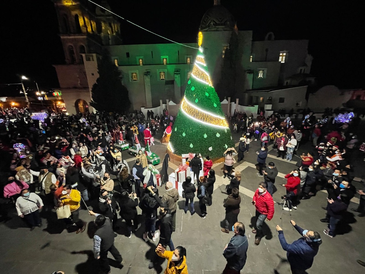 Teziutlán, Puebla.- En una emotiva y cálida noche, el presidente municipal Carlos Peredo Grau, acompañado de sus regidores y colaboradores del gobierno 2021-2024, a la cuenta regresiva de 10 a cero, encendió el Árbol de Navidad que celebra las fiestas decembrinas 2021 en la plaza Cívica, desde ahí ante más de dos mil personas el alcalde dijo que después de dos años muy difíciles Teziutlán se levantará, deseó unas felices fiestas decembrinas y un próspero año nuevo 2022 a todos los teziutecos en compañía de sus familiares, aseguró que en los próximos tres años Teziutlán se consolidará como un centro regional de desarrollo económico y bienestar, además de ser una ciudad segura para vivir, en un ambiente de paz y tranquilidad, tal y como demandan sus habitantes.