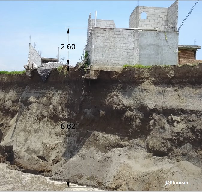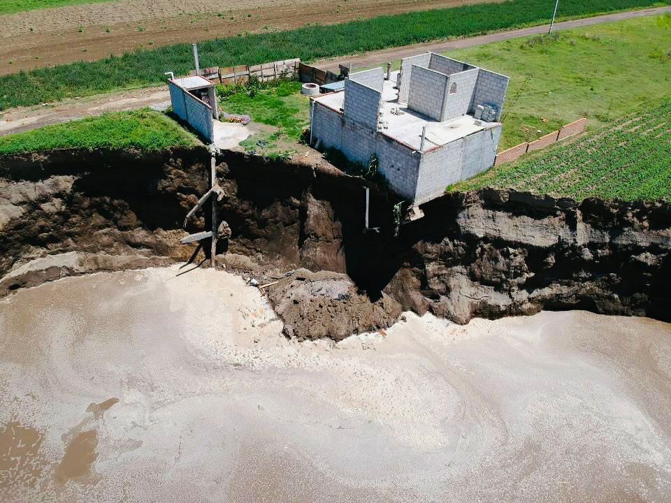 El crecimiento en el diámetro del hundimiento, aunado a la inestabilidad que presenta la tierra a alrededor de este socavón, ha propiciado que los cimientos de la vivienda que colinda con este fenómeno geológico, estén prácticamente volando.