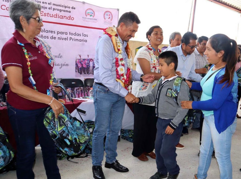 Un total de 6 mil 775 mochilas y útiles escolares, entregó el Ayuntamiento del Presidente de Tlatlauquitepec, Porfirio Loeza Aguilar, a estudiantes de Primarias Formales, Primarias Indígenas y Primarias del Consejo Nacional de Fomento Educativo (Conafe).