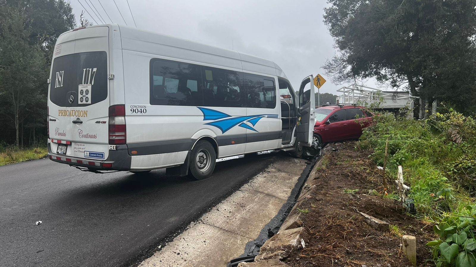 El accidente fue a causa de que un auto compacto invadiera carril e impactará a la Unidad de Transporte Público donde viajaban estudiantes del Tec de Zacapoaxtla; por fortuna solo lesiones leves presentaron.