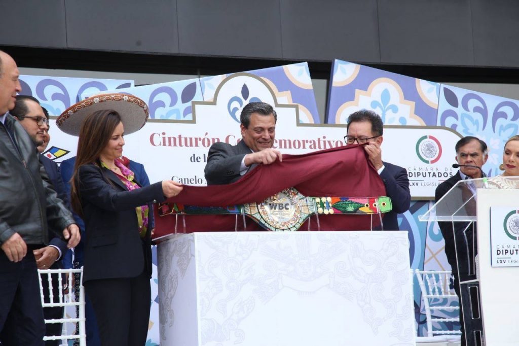 Por su parte, el presidente del Consejo Mundial de Boxeo (CMB), Mauricio Sulaimán, destacó la belleza e importancia de este cinturón para la pelea del mexicano ‘Canelo’ Álvarez.