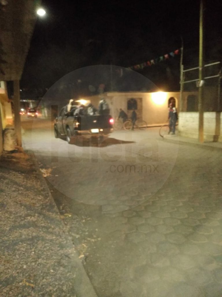 Eran unos encapuchados quienes entraron a la fuerza a varios domicilios haciendo destrozos y apuntando como sus armas de fuego primero en la casa del masculino nadie opuso resistencia, sin embargo hicieron destrozos tratando de buscar a más personas, en esta casa dejaron a una persona de la tercera edad con una fuerte crisis nerviosa que casi deriva en un paro cardíaco.