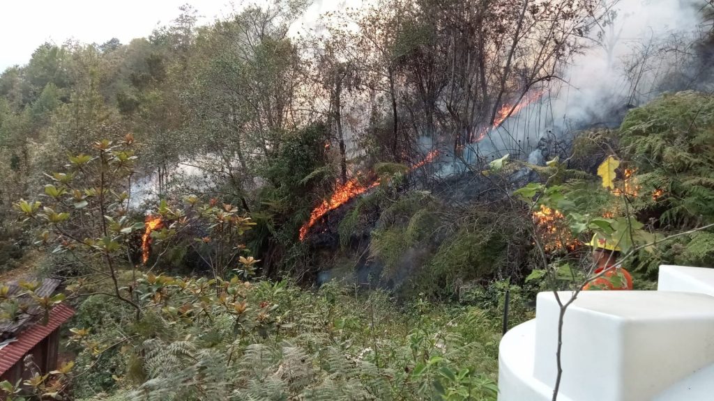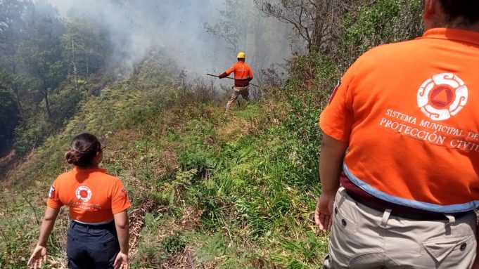 A las labores de abrir brechas cortafuegos y controlar el incendio se sumaron inspectores y comuneros de las comunidades de La Unión, Tamalayo, y San Agustín Chagchaltzin.