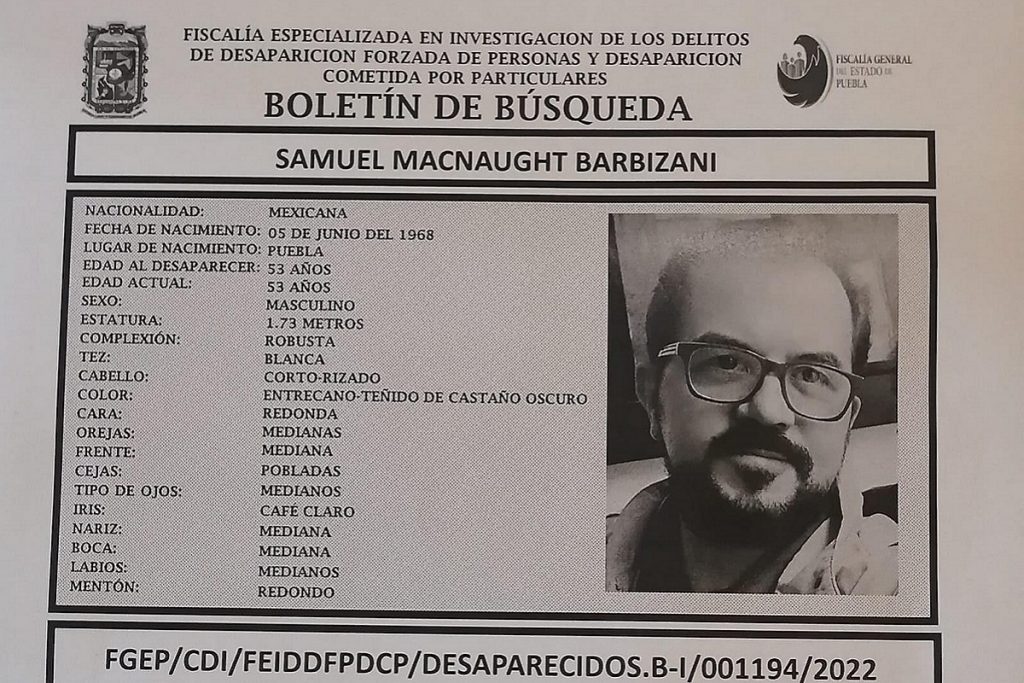 El artista plástico Samuel MacNaught Barnizan fue reportado como desaparecido el pasado 19 de octubre y dos días después fue hallado sin vida dentro de la habitación de un motel en Puebla.