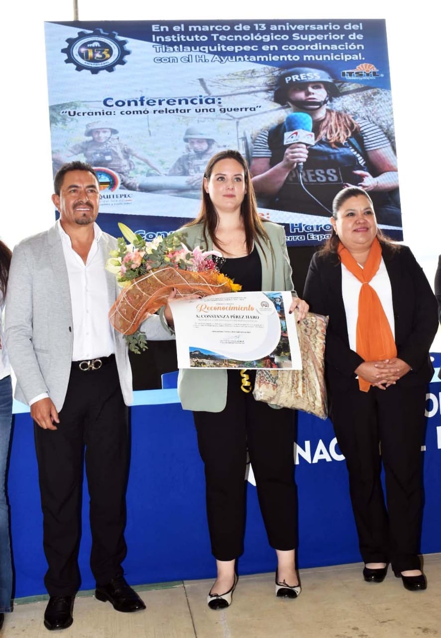 La ponencia se realizó en las instalaciones del Instituto Tecnológico Superior de Tlatlauquitepec, en donde al final de la conferencia, las y los jóvenes, reconocieron la valentía de Constanza, quien logró ingresar a un sector del periodismo que antes solo era reservado para hombres y ahora las mujeres han ganado espacios, como lo es la cobertura de una Guerra.