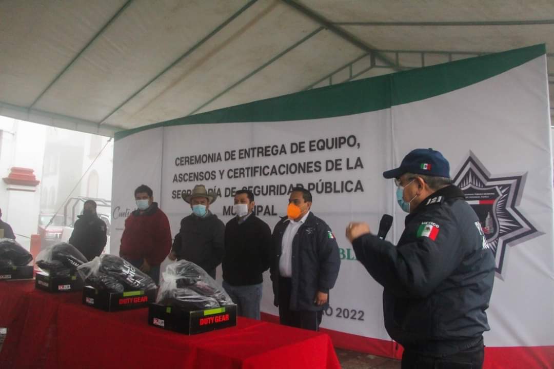 Este lunes el Lic. Gerson Calixto Dattoli, presidente municipal de Cuetzalan del Progreso, hizo entrega de 2 patrullas que se sumaran a los operativos permanentes de salvaguarda de la población, así mismo, se entregaron 11 certificaciones a elementos de la policía Municipal, 10 convalidaciones, 2 ascensos de policía 3° a policía 2°, 2 convalidaciones como policía 2°, 1 convalidación como policía 3° y 4 ascensos de policía raso a policía 3°, además, gracias a la donación realizada por el Gobierno del Estado, se dotó de uniformes y equipamiento a los elementos municipales.