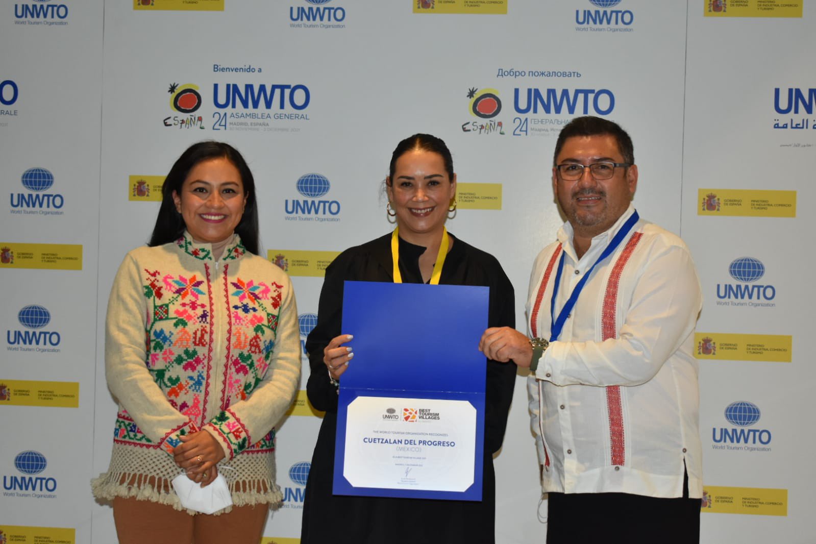 Esta mañana en el marco de la Vigésimo Cuarta Asamblea General de la Organización Mundial de Turismo, la Delegación Mexicana integrada por el Secretario de Turismo de México, Lic. Miguel Torruco; la Secretaría de Turismo de Puebla, Lic. Martha Ornelas; la Directora de Pueblos Mágicos del Estado de Puebla, Lic. Karla Vázquez y el Presidente Municipal de Cuetzalan del Progreso, Lic. Gerson Calixto quienes recibieron este reconocimiento en Madrid, España, Sede de la OMT.