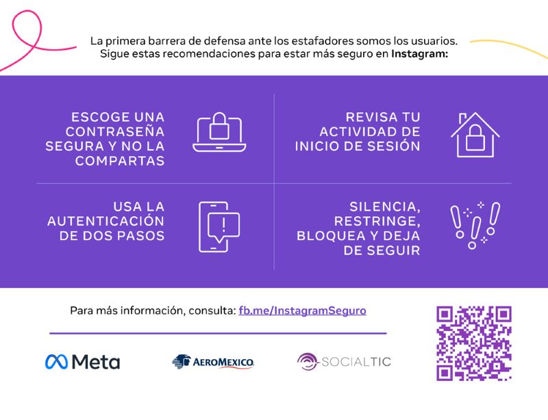 Meta, Aeroméxico y SocialTIC trabajaron en colaboración para evitar que las personas sean víctimas de fraude en Facebook, Instagram y WhatsApp, aquí sus recomendaciones.