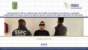Puebla, Pue.— En cumplimiento a una orden judicial, la Fiscalía General del Estado de Puebla (FGE) aprehendió a Alejandro N., señalado como probable responsable del delito de abuso sexual en agravio de dos menores de edad originarias de Alemania. La detención fue posible gracias a la colaboración con la Secretaría de Seguridad y Protección Ciudadana (SSPC) del Gobierno de México.