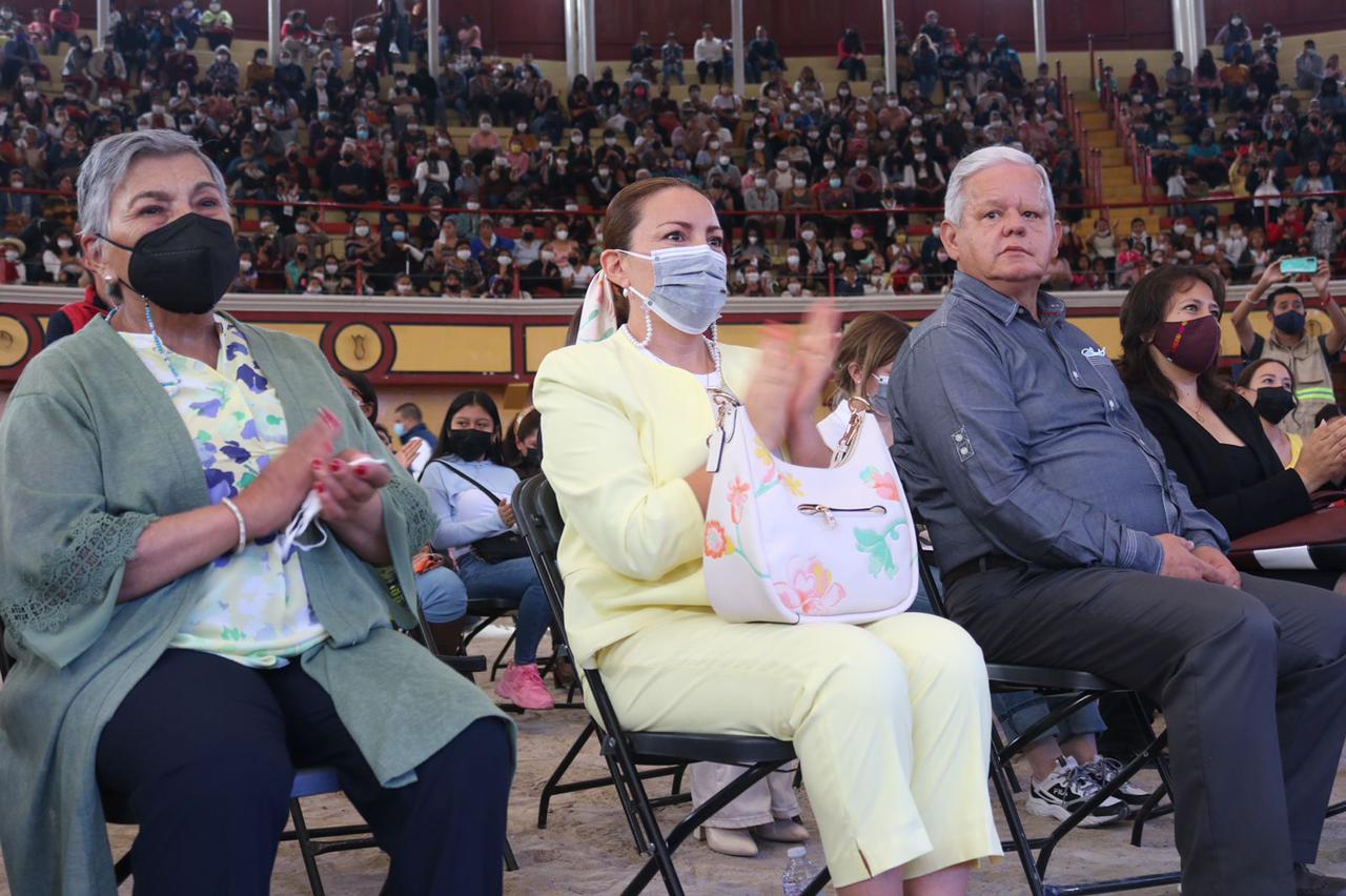 La Plaza de Toros el Pinal, fue el marco perfecto para el evento 2022 del festejo a las madres teziutecas por parte del gobierno municipal de Teziutlán, a través del sistema DIF, presidido por Angélica Hernández de Peredo, quien acompañada de su esposo el presidente municipal Carlos Peredo, dirigieron emotivos mensajes de reconocimiento a la invaluable labor diaria que realizan las mamás, que en miles de casos fungen como pilar y único sostén económico de sus familias, a las que sacan adelante a través de grandes sacrificios y mucho trabajo.