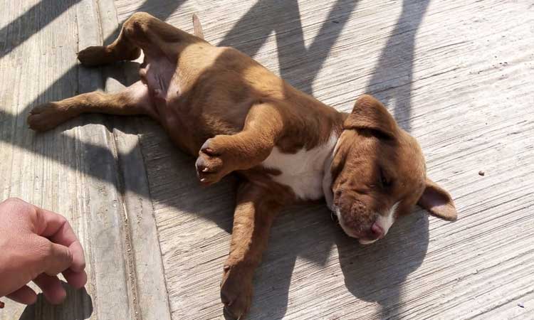 Un perro es Spay, de ocho meses y de raza pitbull, que salió de su casa. Corría por los terrenos de cultivo cuando sobrepasó el perímetro de seguridad, junto con otro compañerito suyo, y de esta forma ambos perritos cayeron en el socavón.