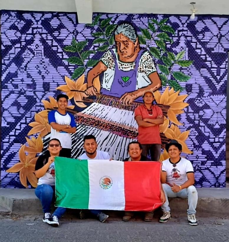 En esta destacada participación de jóvenes muralistas mexicanos y que con orgullo plasmaron en un mural la indumentaria que representa a la gente de la Sierra Poblana, llena de historia, en la que transforman en inspiración para crear bordados multicolores que hablan de la relación de los hombres y mujeres con sus raíces y su entorno.