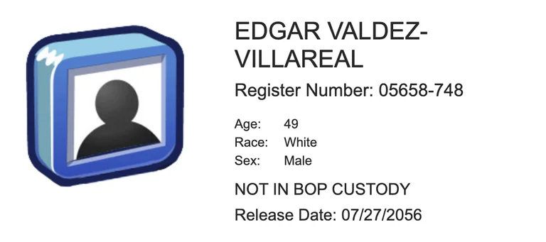 A través de expedientes se informó que Édgar Valdez Villarreal alias La Barbie no se encuentra bajo custodia, pues en el buscador de reclusos de la Agencia Federal de Prisiones de Estados Unidos se establece que el recluso con número 05658-748 no se encuentra bajo custodia.