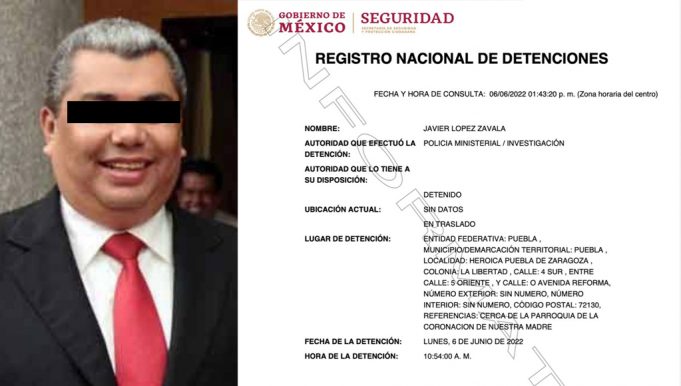 De acuerdo con el Registro Nacional de Detenciones, el priista fue privado de la libertad cerca de la parroquia Coronación de Nuestra Madre, alrededor de las 10:54 horas.