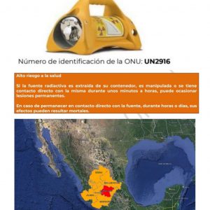 “Si la fuente radiactiva es expuesta o es extraída de su contenedor, usted la manipula, o tiene contacto directo con la misma durante unos minutos a horas, podría ocasionarle lesiones permanentes y puede resultar fatal si permanece cerca de la fuente radiactiva durante horas”, dice el aviso de emergencia.