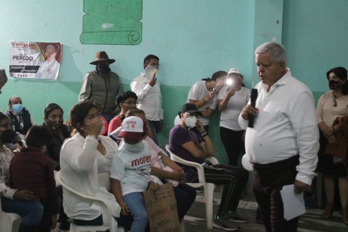 Carlos Peredo pidió la confianza nuevamente de los habitantes del barrio de Francia, “les invitó a razonar muy bien su sufragio, salgan a votar por esta candidatura y la de las aspirantes de MORENA en los distritos local 06 y federal 03.