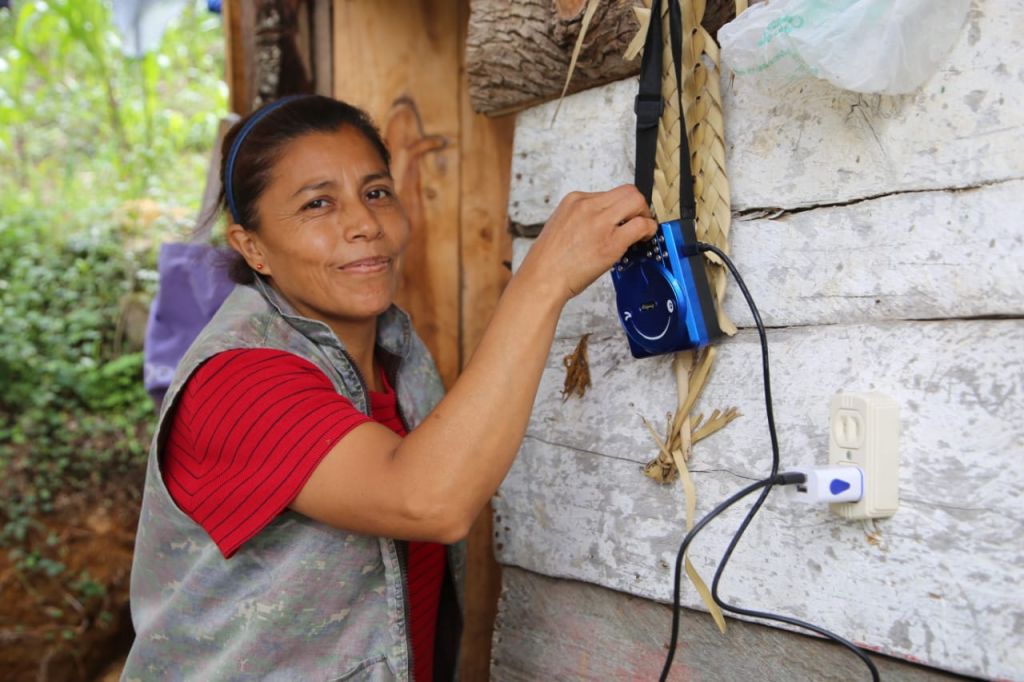 Una de las beneficiarias con un panel solar, de nombre Verónica Herrera Sánchez, originaria de Loma Bonita, agradeció al gobernador Miguel Barbosa Huerta por transformar su vida con este servicio básico.