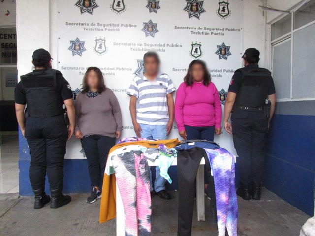 Las dos mujeres y el varón portaban entre sus pertenencias varias prendas de vestir, las cuales habían sido robadas en varios locales comerciales de Teziutlán.