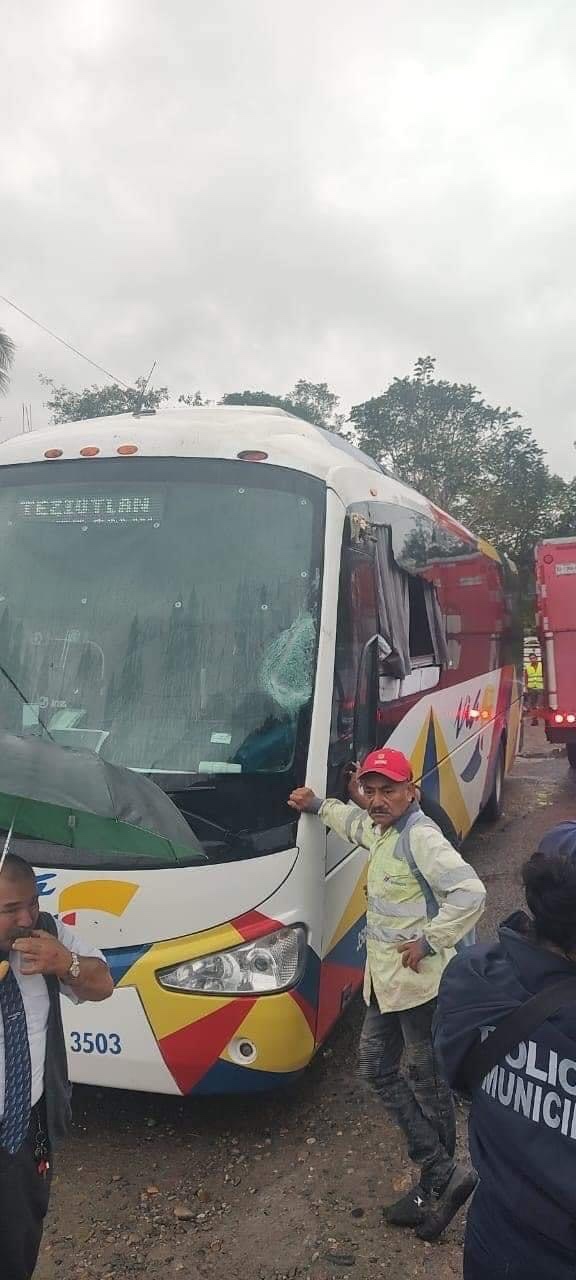 Se trata de un autobús, de la línea Vía proveniente de Teziutlán, Puebla, la cual sufrió daños materiales luego de ser impactada por la otra unidad, debido al percance, el conductor resultó lesionado. Por fortuna no alcanzó a otros pasajeros.