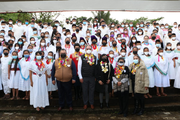 Durante su visita a la Sierra Norte, el titular de la dependencia supervisó el trabajo del modelo híbrido que realizan las y los docentes en la telesecundaria “Tetsijtsilin”, ubicada en la misma comunidad, cuya matrícula es de 270 alumnos, de los cuales el 82.7 por ciento son bilingües (español y náhuatl).