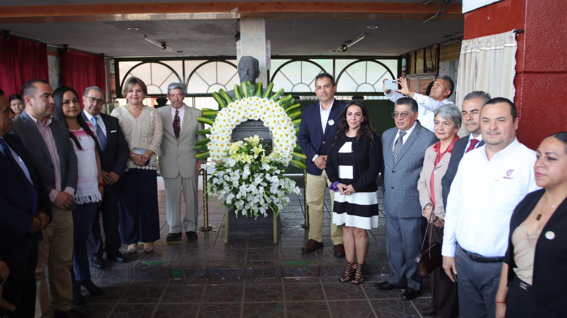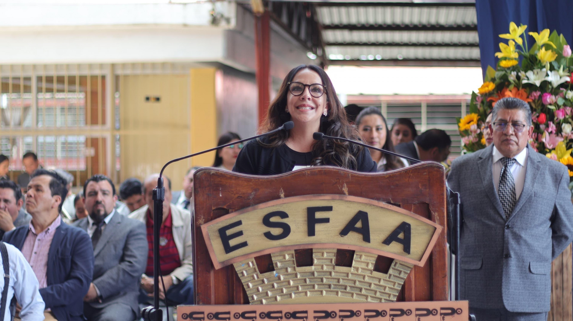 La ceremonia finalizó con la colocación de un arreglo floral y la guardia de honor en el busto de Antonio Audirac, así como la entrega de reconocimientos a ex alumnos y docentes fundadores y la develación de una placa conmemorativa del 65 aniversario de la ESFAA.