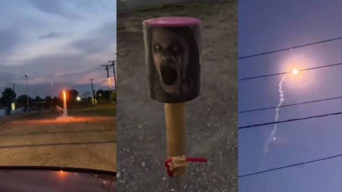 Como se ve en las imágenes, al momento en que la persona enciende el cohete este comenzó a ascender de manera veloz.