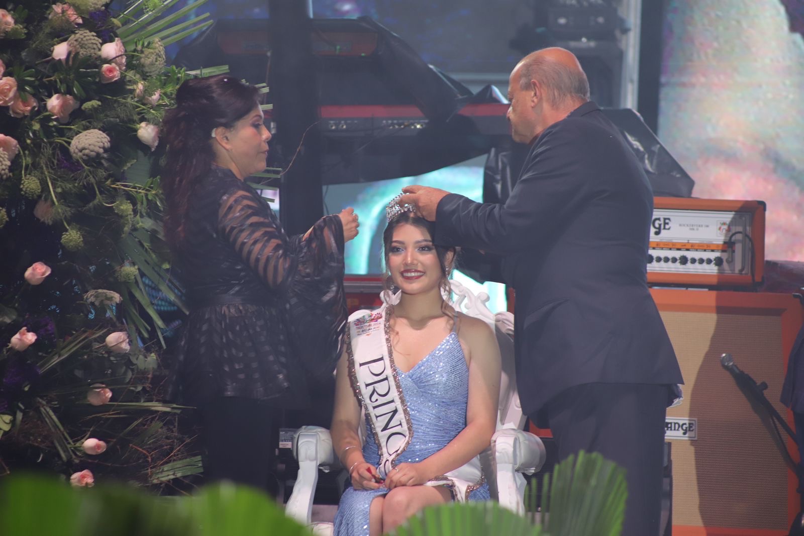 El presidente Carlos Peredo acompañado de su esposa Angélica Hernández y de Juan Ramón Alvarez, representante del gobernador Sergio Salomón, coronaron a Valeria Hernández García, Reina electa de la Feria Teziutlán 2024, ante más de 8 mil asistentes a la plaza de toros el Pinal.