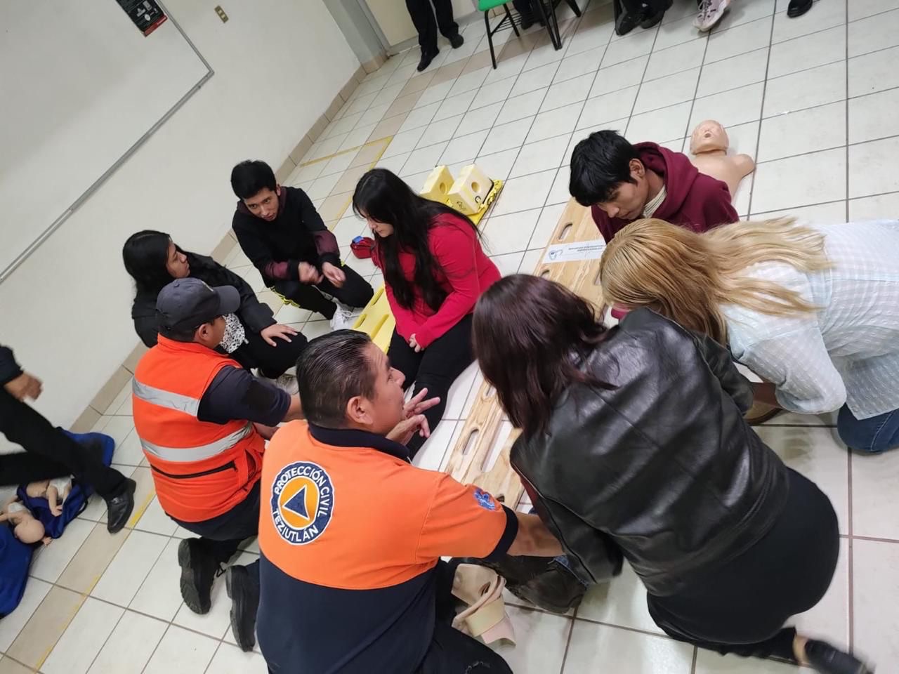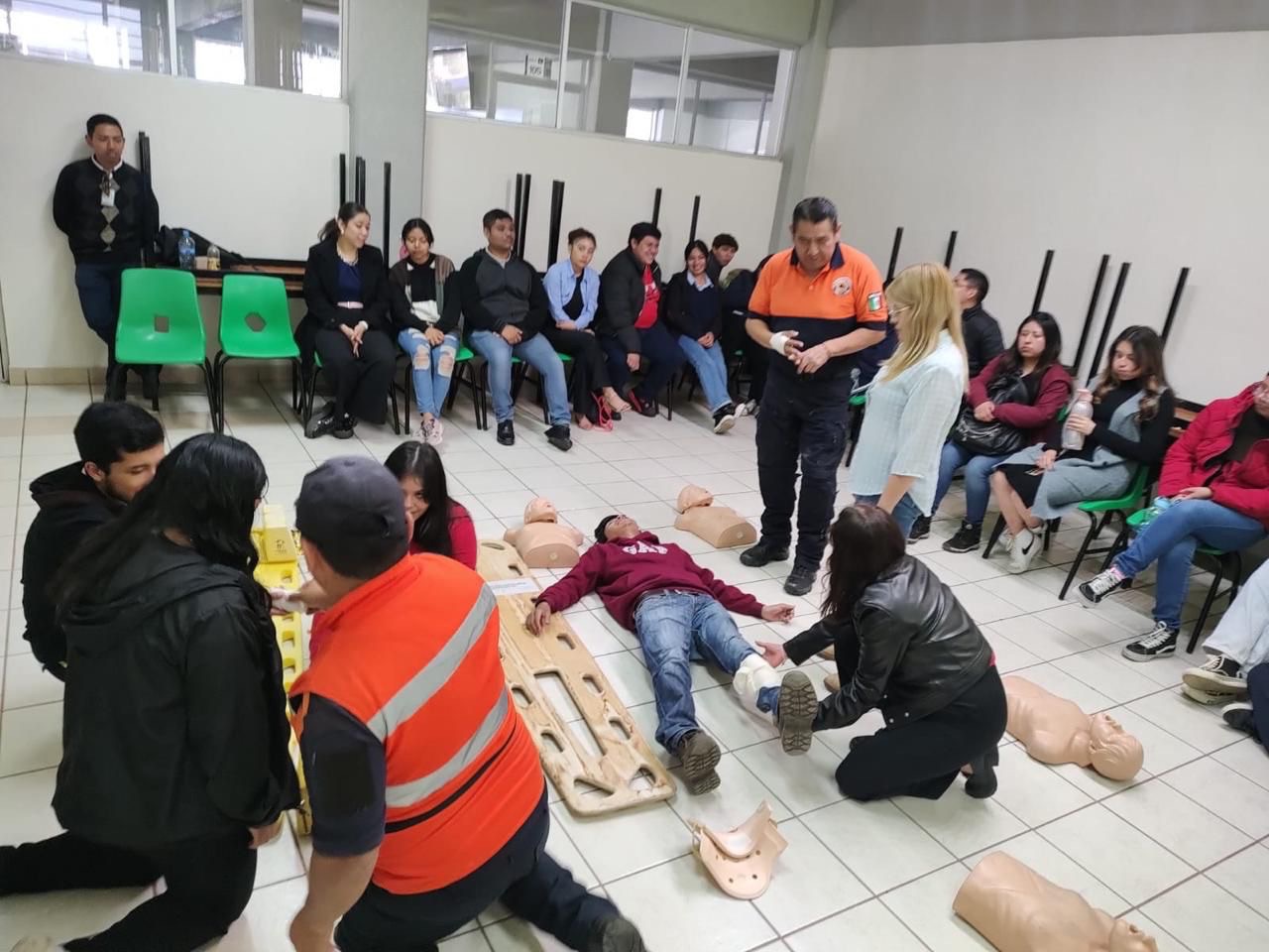 Personal operativo de la Dirección de Protección Civil, encabezada por Alejandro Gabriel Luna Aquino, acudió a brindar capacitación teórico-práctica a alumnos del tercer semestre de la carrera en la Licenciatura de Turismo del sistema escolarizado y sabatino, con quienes se realizó la capacitación de Primeros Auxilios denominada “Acciones para Salvar una Vida”. Todo esto como parte del programa de “Proximidad Social” que promueve la Secretaría de Seguridad Pública.