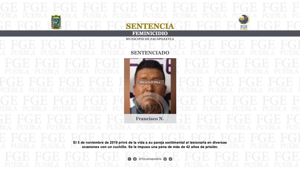 Francisco N fue sentenciado a más de 42 años de prisión por cometer feminicidio en contra de su pareja sentimental en Zacapoaxtla.