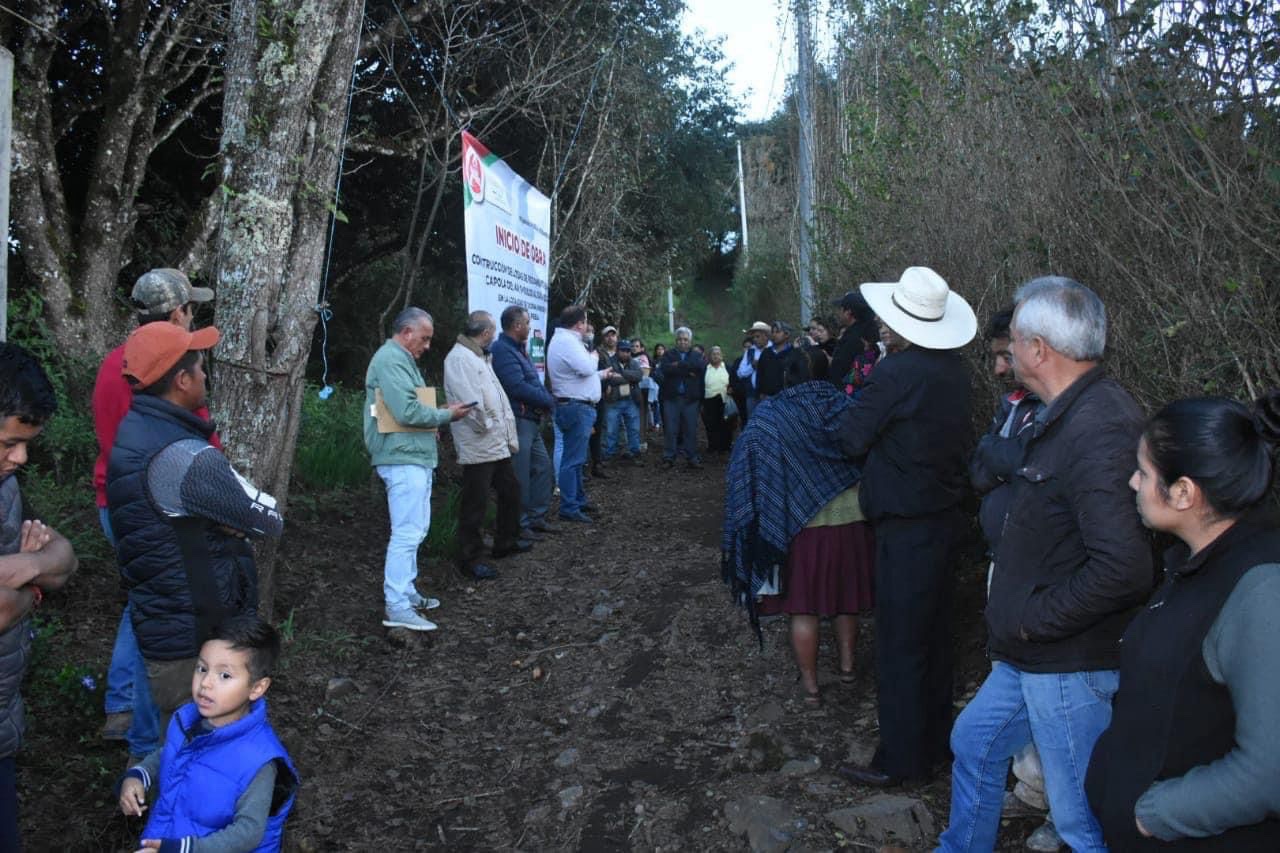 Atempan, Pue.- Como parte del recorrido que realiza el Gobierno de Atempan, dando inicio a obras para el mejoramiento de caminos en beneficio de diferentes comunidades, esta tarde la comitiva encabezada por el Presidente Municipal, Ing. Carlos Herrera González, acompañado de Regidoras y Regidores, visitó la junta auxiliar de Tacopan donde el comité de obra y vecinos presenciaron el banderazo que marca el comienzo del trabajo de construcción de 200 metros cuadrados de losas de rodamiento en la Privada Capola.
