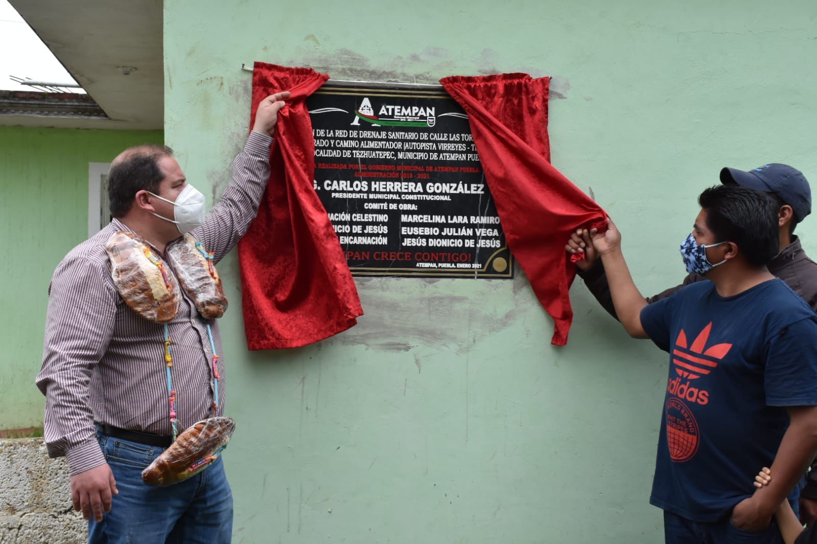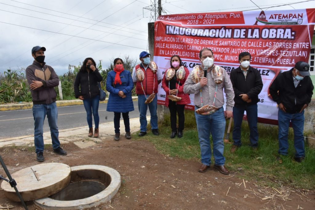 Atempan, Pue. – El presidente municipal de Atempan el Ing. Carlos Herrera junto con su equipo de trabajo entrego este viernes una obra en beneficio de la comunidad de Tezhuatepec, siendo está una ampliación de drenaje sanitario que beneficiará a las familias de la calle Las Torres.