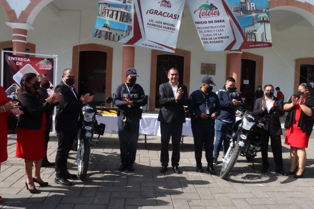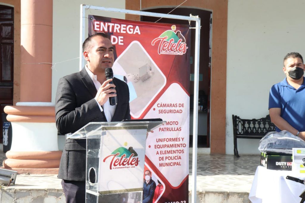 Con el firme objetivo de equipar a la fuerza de seguridad del municipio de Teteles, el Presidente Municipal, Lic. Mario Castro Jiménez, en compañía de su H. Cabildo, llevaron a cabo la entrega de dos moto patrullas, 12 cámaras de videovigilancia instaladas en el inmueble de la Presidencia Municipal, entrega de uniformes a todo el cuerpo de Seguridad Pública y accesorios y herramientas que serán de gran utilidad para el equipo de Protección Civil.