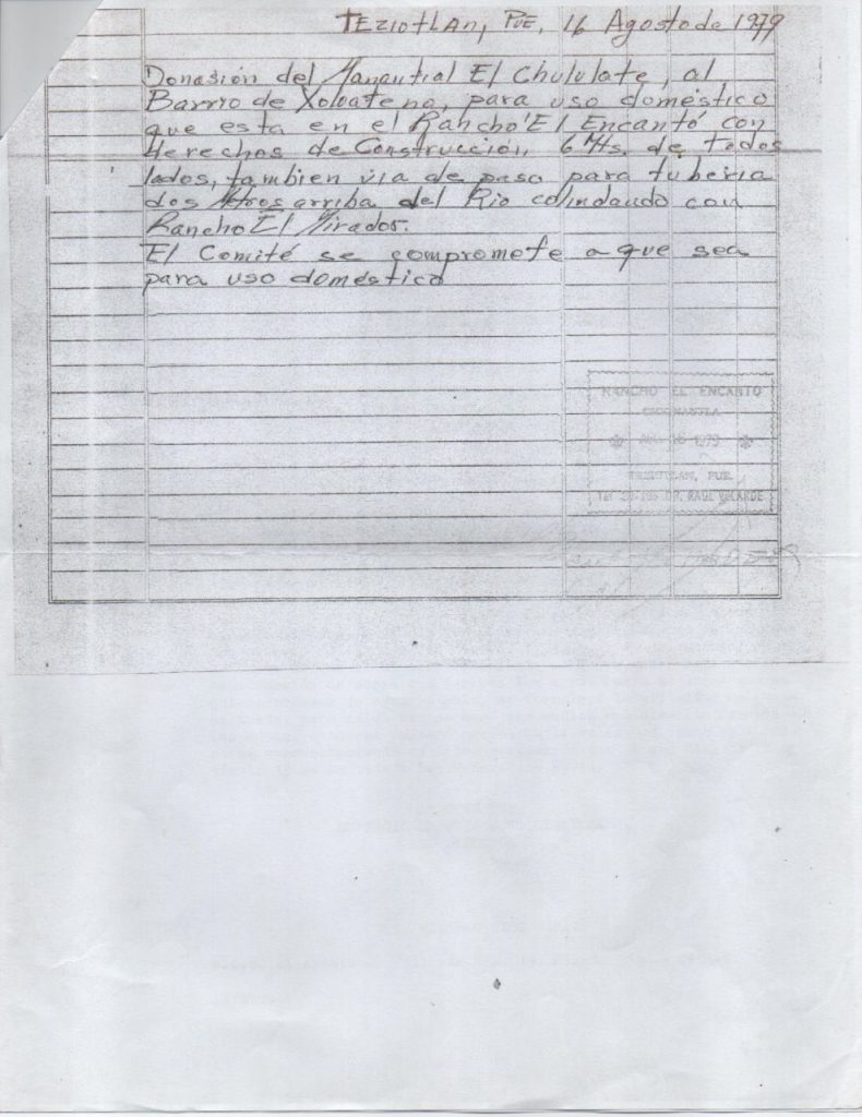 A través de sesión de cabildo el gobierno municipal de Teziutlán acordó adquirir el terreno ubicado en el Rancho el Encanto, donde se encuentra el Pozo de agua del Xululate, con el objetivo de donarlo de manera definitiva al comité pro agua potable del barrio de Xoloateno, lo que permitirá explotar dicho pozo en beneficio de más de mil 500 familias para uso doméstico.