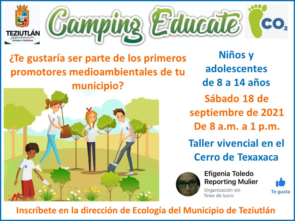 Teziutlán, Puebla.- Este próximo sábado 18 de septiembre, el gobierno municipal de Teziutlán, en coordinación con activistas ambientales, iniciará un ambicioso proyecto piloto de protección y conservación del medio ambiente, “Camping Educate”, a través de un taller vivencial dirigido a niños jóvenes y adolescentes en el Cerro del Texaxaca, en el que se impartirán varios temas, en un inicio por las restricciones propias del Covid 19, sólo a 60 asistentes, con el objetivo de que se conviertan en futuros promotores medio ambientalistas de Teziutlán.