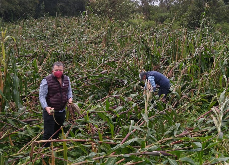 Teziutlán, Puebla. – Desde el día de ayer, el Ing. Luis Porfirio Cuanalo Araujo, Subsecretario de producción y productividad de la Secretaria de Desarrollo rural del Gobierno del estado, recorrió junto con personal del ayuntamiento teziuteco las zonas afectadas en las diferentes juntas auxiliares y comunidades del municipio, en un primer informe se tiene que mas de 520 hectáreas de cultivos han sido afectadas, sobre todo en el de maíz.