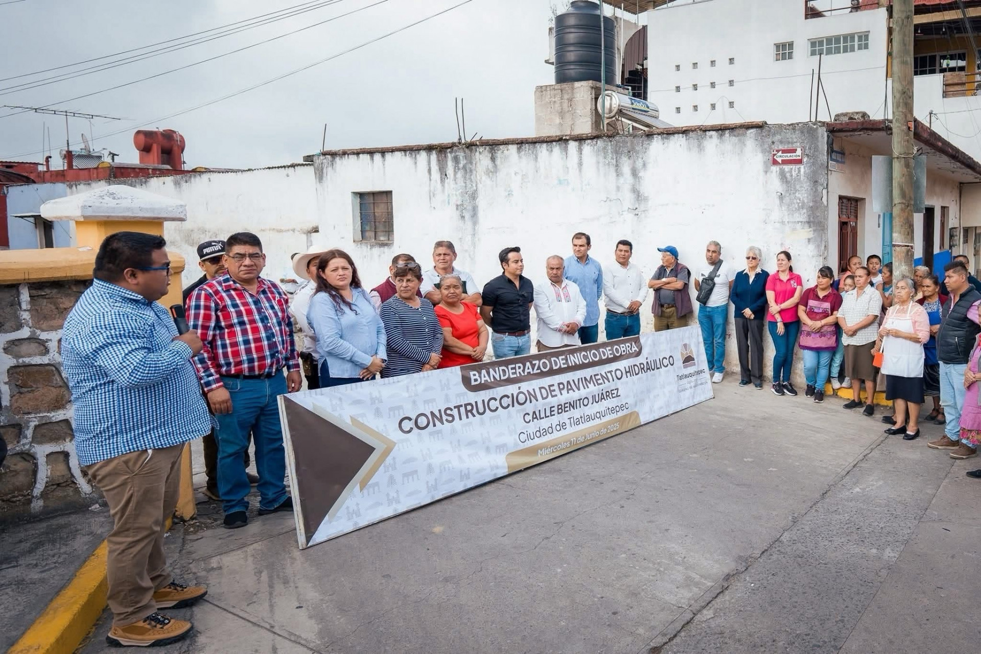 Tlatlauquitepec, Pue.— El pasado miércoles, el presidente municipal Juan Manuel Téllez Salazar, acompañado de regidores, directores, comerciantes del mercado y vecinos de la zona, dio el banderazo de inicio a la construcción de pavimento con concreto hidráulico en la calle Benito Juárez, una de las vialidades más transitadas de la cabecera municipal.
