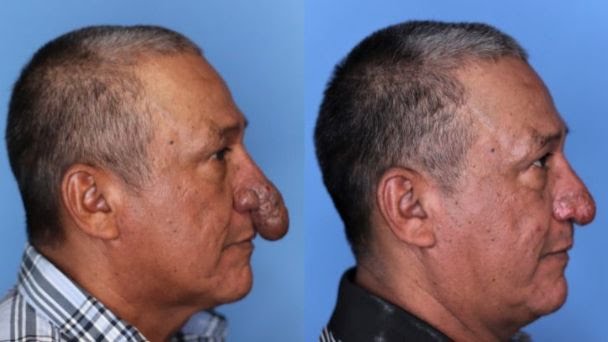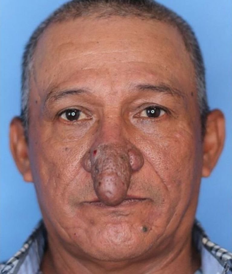 El hombre de 57 años tenía una severa rinofima mal tratada.